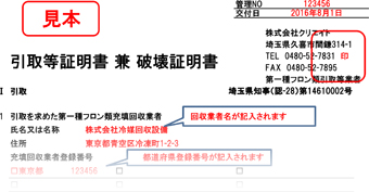 破壊証明書の発行(ボンベ1本につき1通の発行となります)